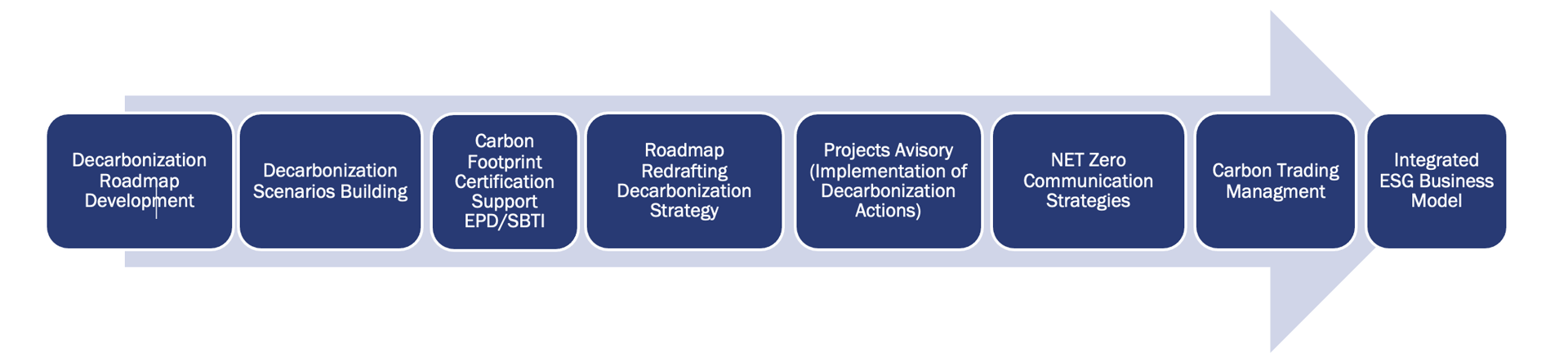 1. Decarbonization Roadmap Aligned with Strategic Objectives: crafting a Decarbonization Roadmap tailored to client’s capabilities, potential and in line with their strategic objectives, while maintaining compliance with local and international standards.